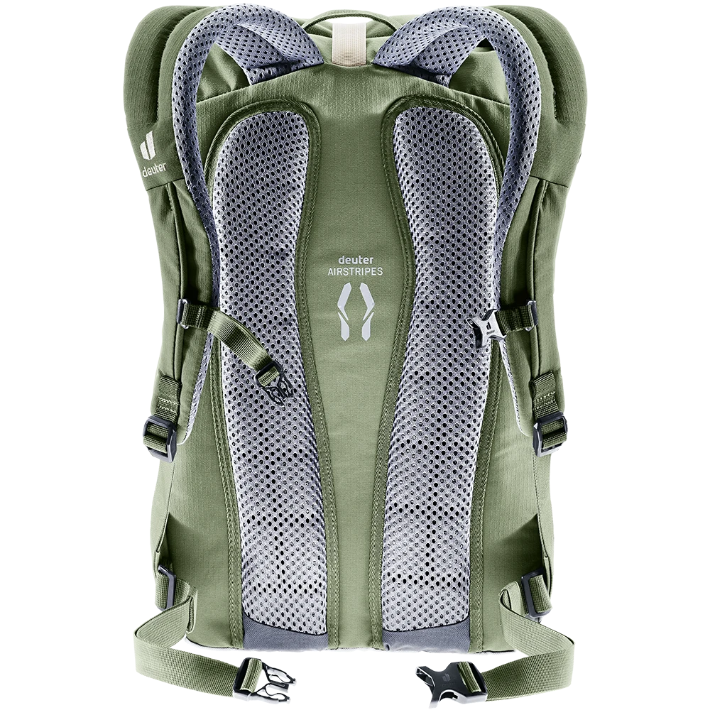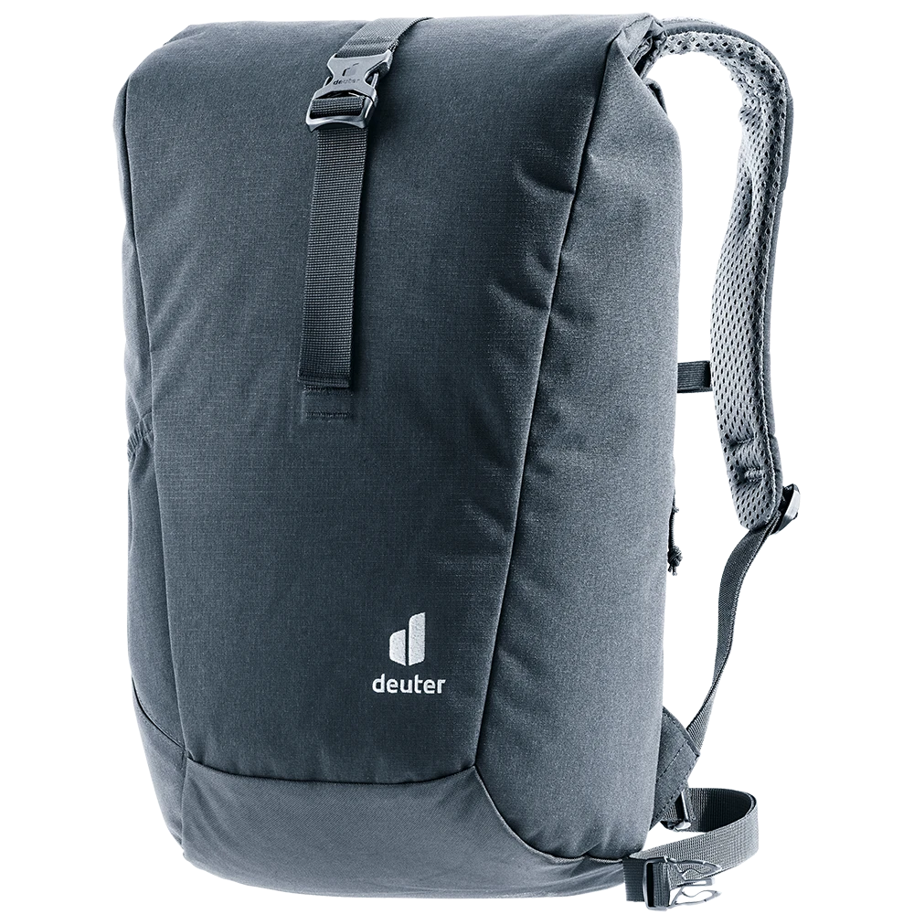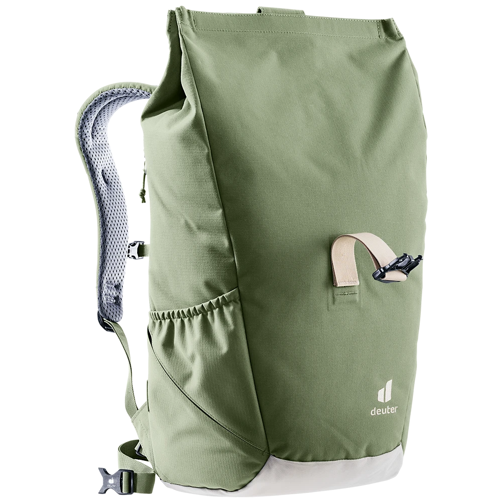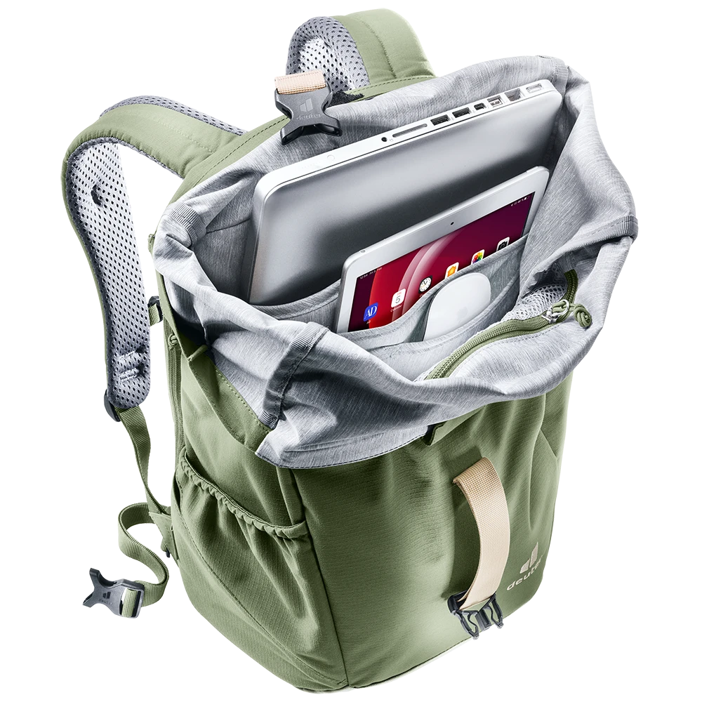 Dank perforierter, ergonomischer Schulterträger und geringer Rückenauflage des Airstripes Rückensystems punktet der Stepout mit maximaler Luftzirkulation und hohem Tragekomfort. Die Roll-Top Volumenerweiterung, das seitliche Handyfach und die elastische Seitentasche sorgen für schnellen Zugriff auf wichtige Dinge. Im Inneren bieten Dokumenten- und Laptopfach sowie Trinkflaschen-Halterung eine gute Organisation. Der Stoff des PFC-freien, mit dem Grünen Knopf zertifizierten bluesign® Produkts besteht aus 26 recycelten 0,5 Liter PET Flaschen und wird nach dem bluesign® Standard hergestellt.