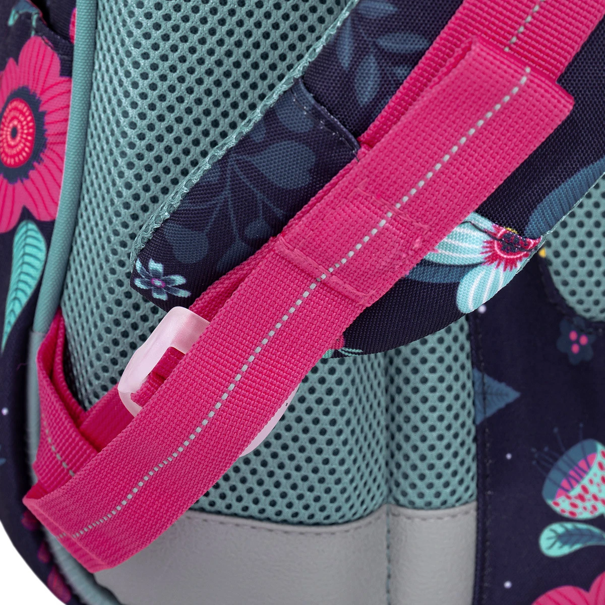 Die Enden der Rucksackgurte sind mit Magneten ausgestattet. Diese werden zur Befestigung am gepolsterten Teil des Schultergurts verwendet. Dadurch wird verhindert, dass die losen Enden der Gurte um den Körper des Kindes herumfliegen.