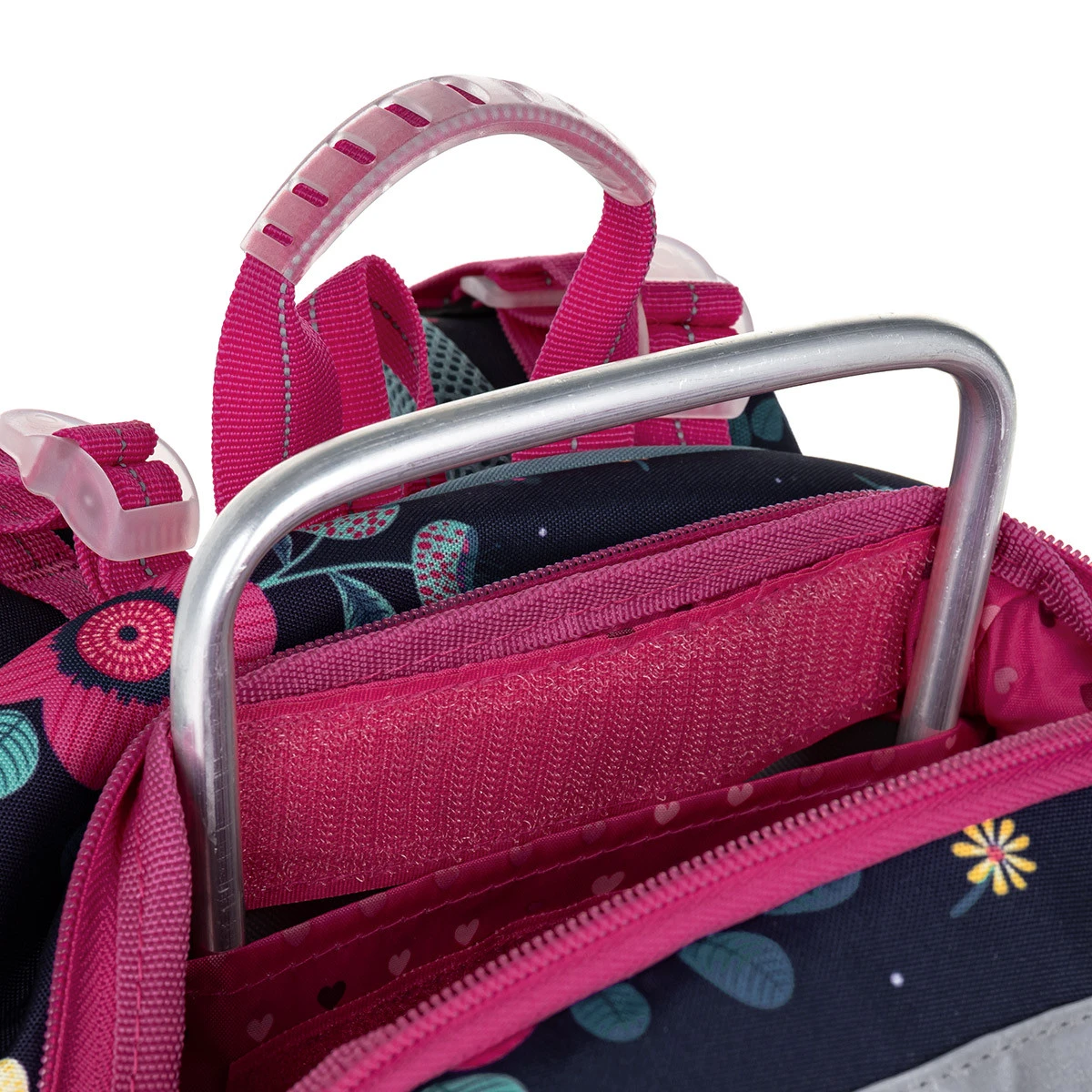 Ein Hauptfach der Aktentasche für ein Kind erleichtert die Organisation und Verteilung der Hilfsmittel. Der Innenraum der Aktentasche wird durch undurchlässige gummierte Trennwände in drei Teile geteilt. Im Hauptfach finden Sie ein kleines Reißverschlussfach und einen Organizer, zum Beispiel für Chipkarten und Stifte. Achten Sie darauf, die Mappen möglichst nahe am Rücken zu platzieren, aber überlegen Sie, ob sie sie überhaupt brauchen – oft belasten sie die Aktentasche unnötig. Die Flaschentasche befindet sich an der Seite der Aktentasche.