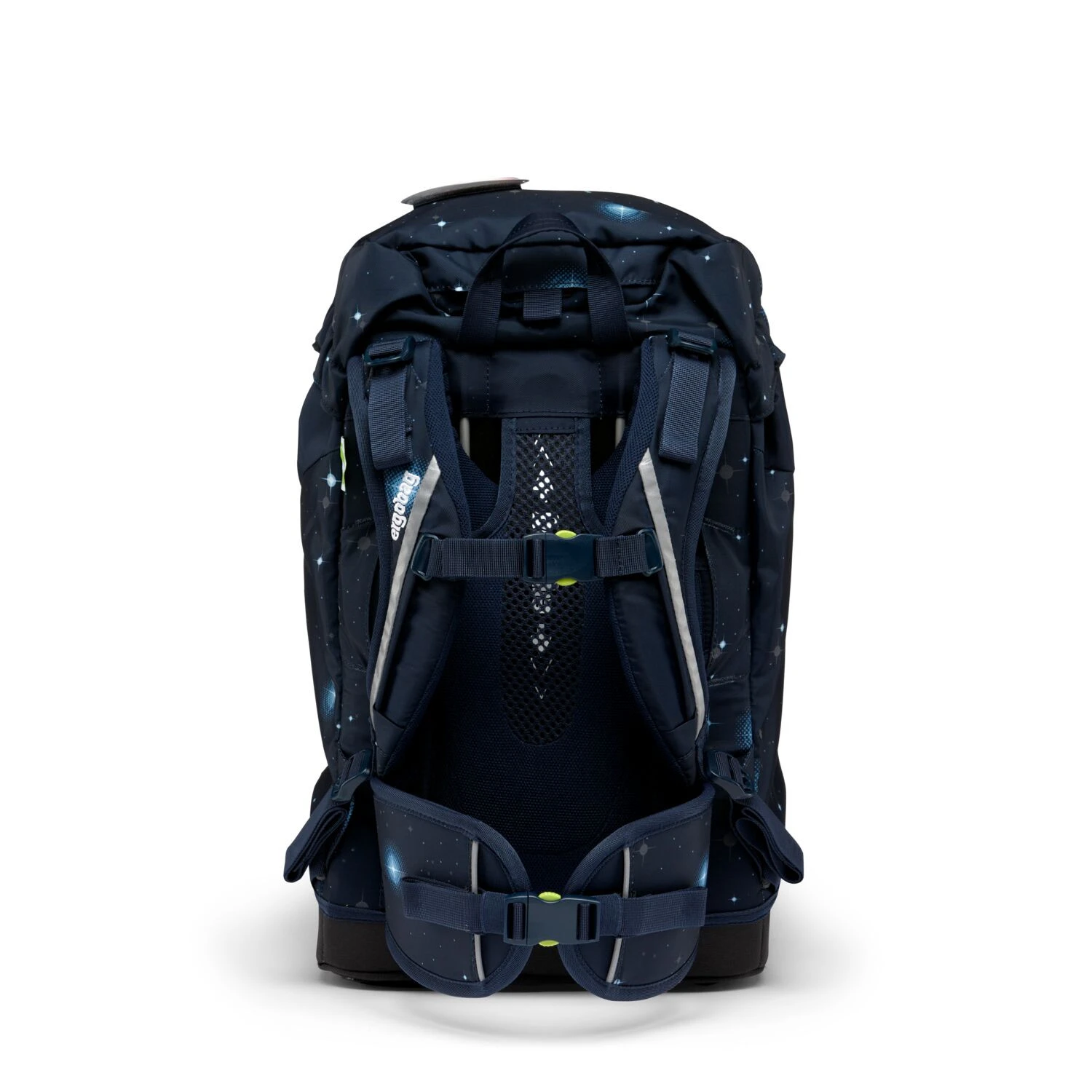 Die Special Edition mit reflektierenden Sternen. Die ergobag GALAXY GLOW Edition mit leuchtendem Sternenmuster bringt ferne Galaxien in die Schule.