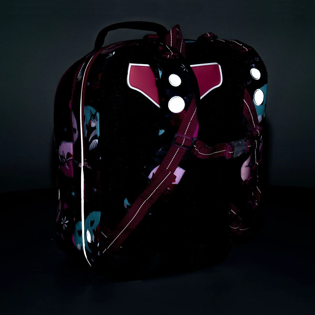 – reflektierende Elemente – an der Vorderseite und den Seiten des Rucksacks, an den Schultergurten