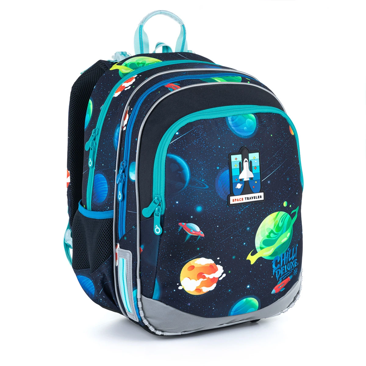 Astronauten vorbereiten, die Expedition zum Schulabenteuer ist bereit! Vergessen Sie nicht, den Zwei-Fächer-Rucksack ELLY 21015 mitzunehmen, der dank seines superleichten Gewichts eine natürliche Ausrüstung für alle Astronauten in der ersten Stufe mit einer Körpergröße von über 120 cm ist.