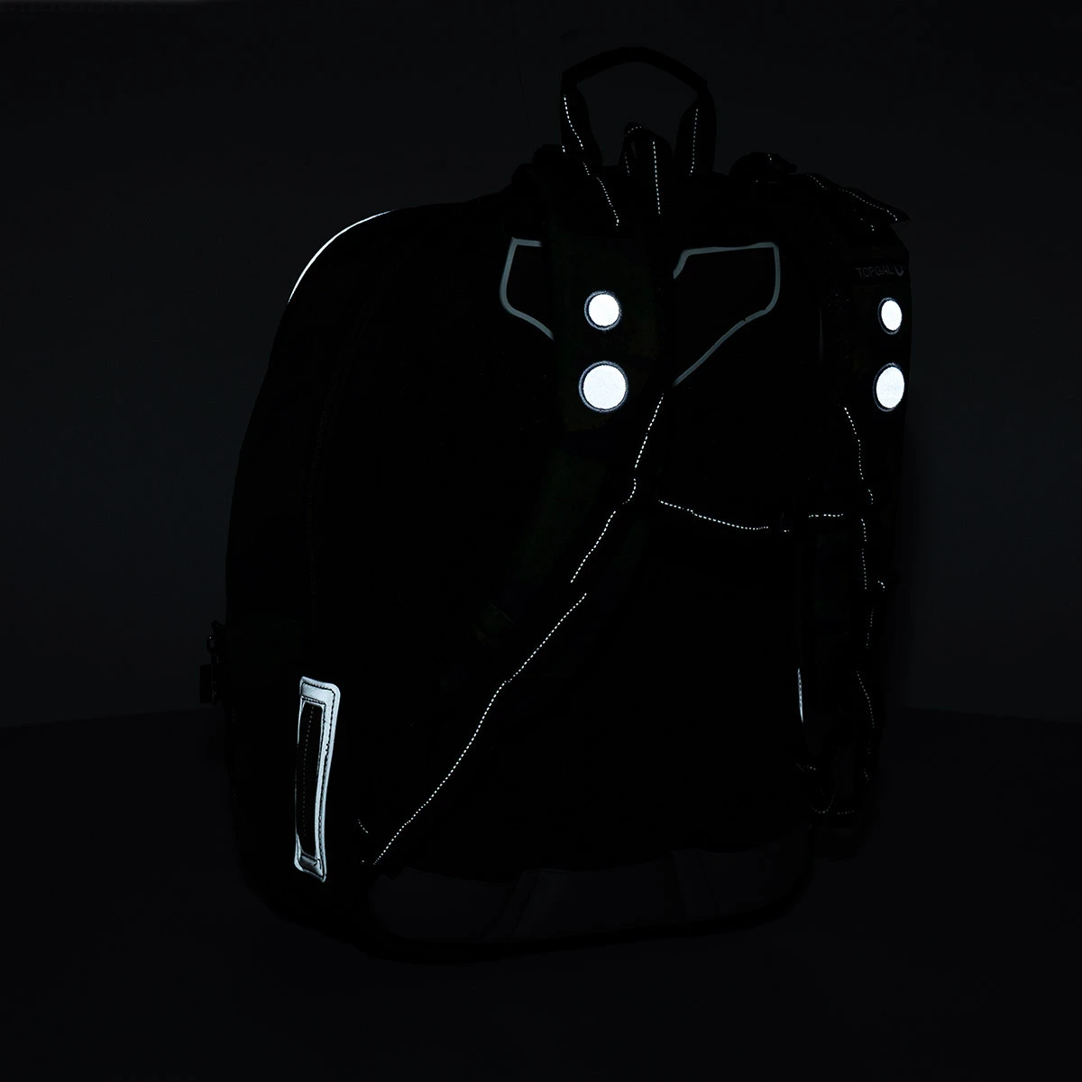 – reflektierende Elemente an allen Seiten des Rucksacks
