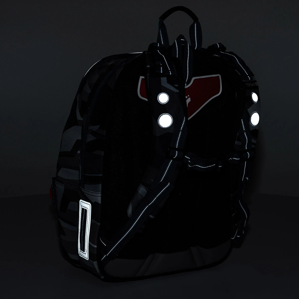– reflektierende Elemente an allen Seiten des Rucksacks