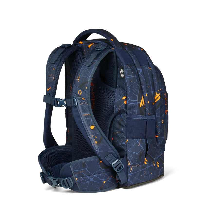 Ergobag satch entlastet und wächst mit: Aus dem Bergsport auf den Schülerrücken: Das satch Tragesystem garantiert die Verlagerung des Gewichts von den Schultern auf den stabilen Beckenbereich. Passgenaue Einstellung von 1,40 m – 1,80 m.