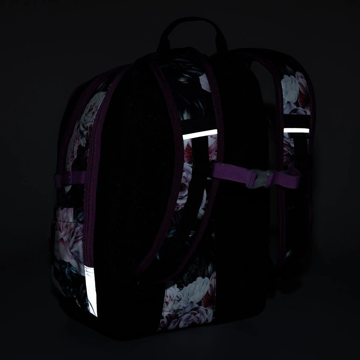 Das Rückenfach des Rucksacks ist sehr groß, Sie können die meiste Ladung darin verstauen, sowohl für die Schule als auch zum Beispiel für Freizeitaktivitäten. Im Inneren Fach befindet sich eine gepolsterte Tasche für einen Laptop oder Ordner und ein weiteres kleineres Fach, zum Beispiel für ein Handy oder eine Powerbank. Das vordere Fach ist schmaler, es enthält eine Netztasche für Kleinteile und einen Karabiner mit langen Federn für um einen Schlüssel zu befestigen. Sie werden die beiden Vordertaschen auf jeden Fall schätzen– die tiefere, voluminöse und auch die kleiner vorne am Rucksack.