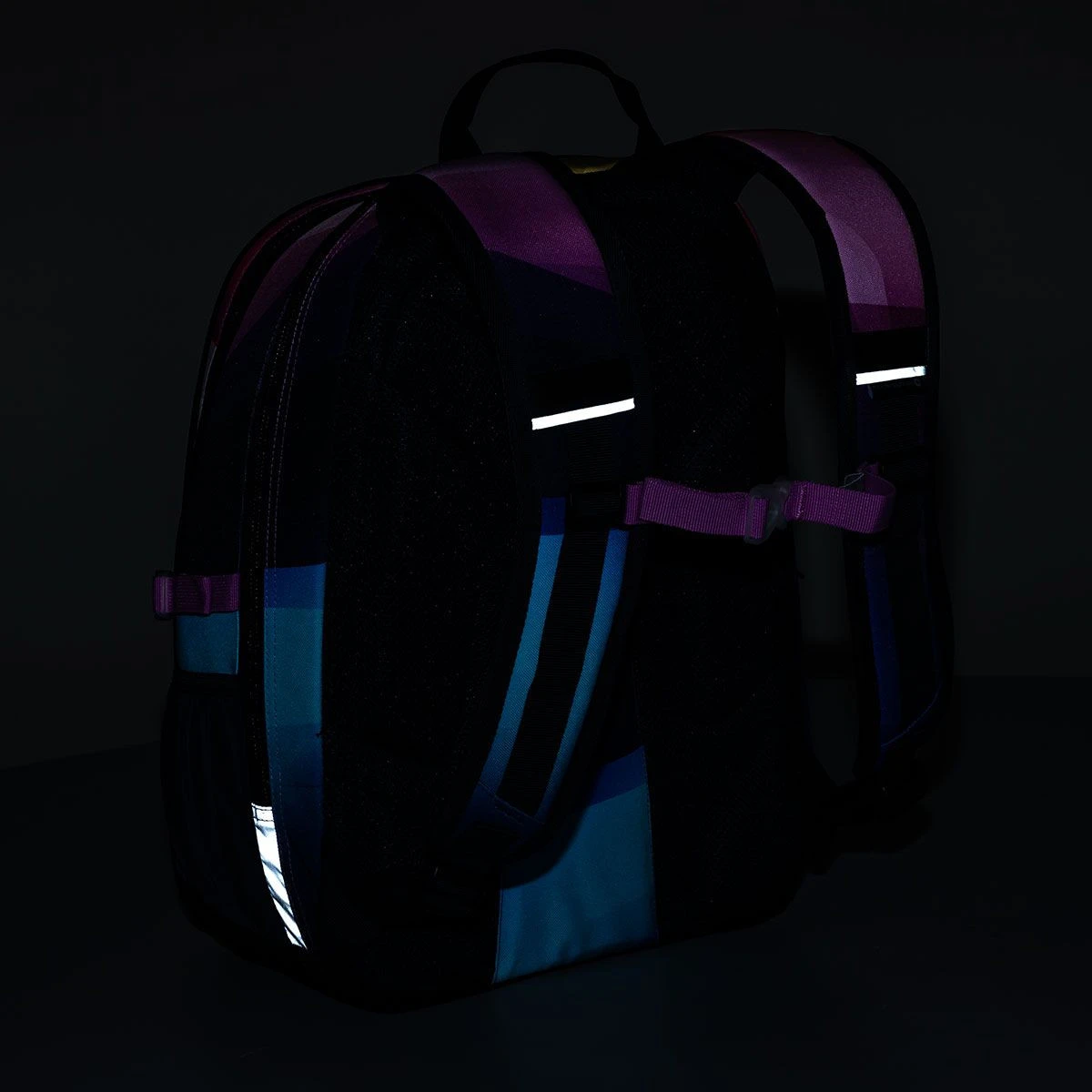 Reflektierende Elemente sind an allen Seiten des Rucksacks dezent platziert – an der Vorderseite, an den Seiten und an den Schultergurten, um das Design nicht zu stören, aber bei schlechter Sicht nützlich zu sein.