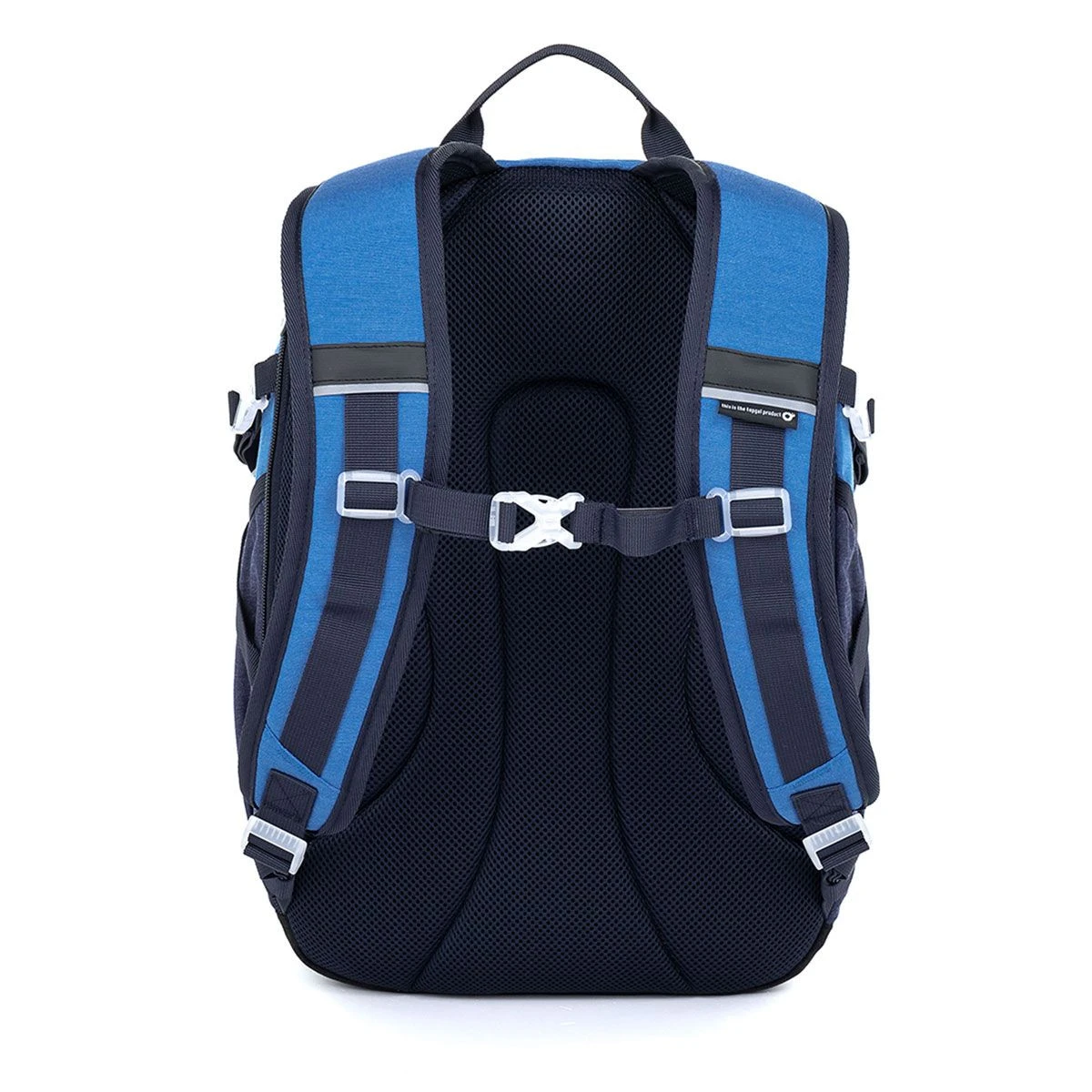 Blauer Studentenrucksack mit extra leichtem Rückensystem. Der Rucksack wiegt nur 0,84 kg.