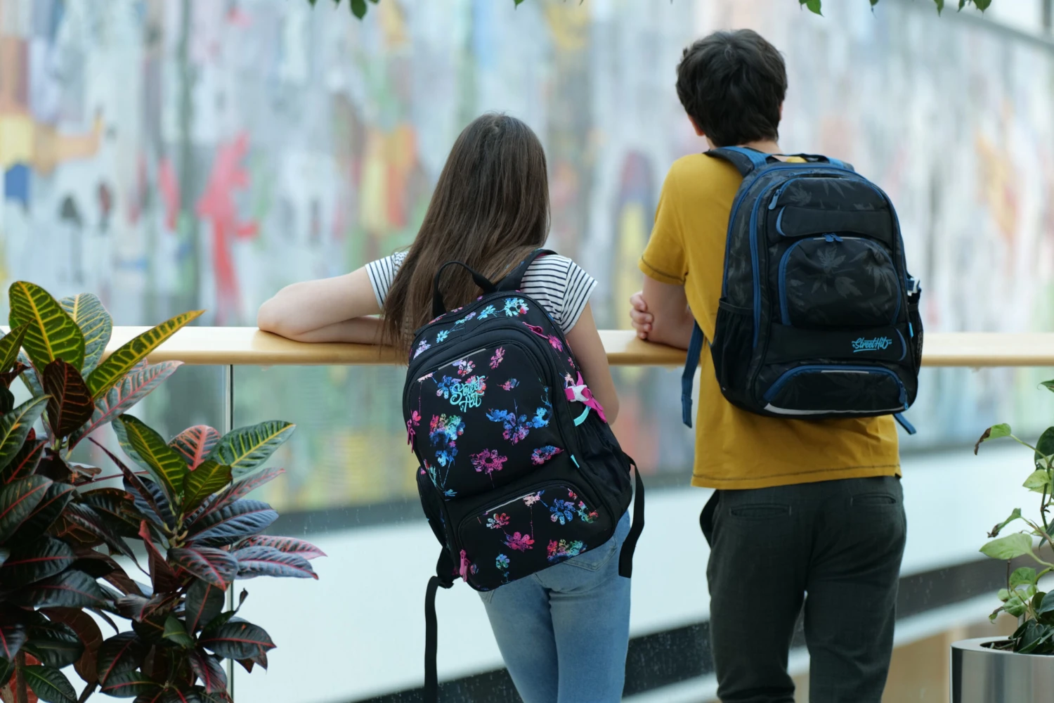 Der Rucksack ist in zwei Hauptfächer und eine weitere Tasche unterteilt. Die Rückenkammer ist sehr groß, Schüler, die einen Laptop zur Schule tragen, werden sicherlich die gepolsterte Tasche für einen Laptop und eine weitere kleinere gepolsterte Tasche, für zum Beispiel ein Handy oder Tablet, zu schätzen wissen. In den vorderen schmaleren Fächern befindet sich eine praktische Netztasche mit Reißverschluss und ein Karabiner für Schlüssel, der an langen Federn angenäht ist.